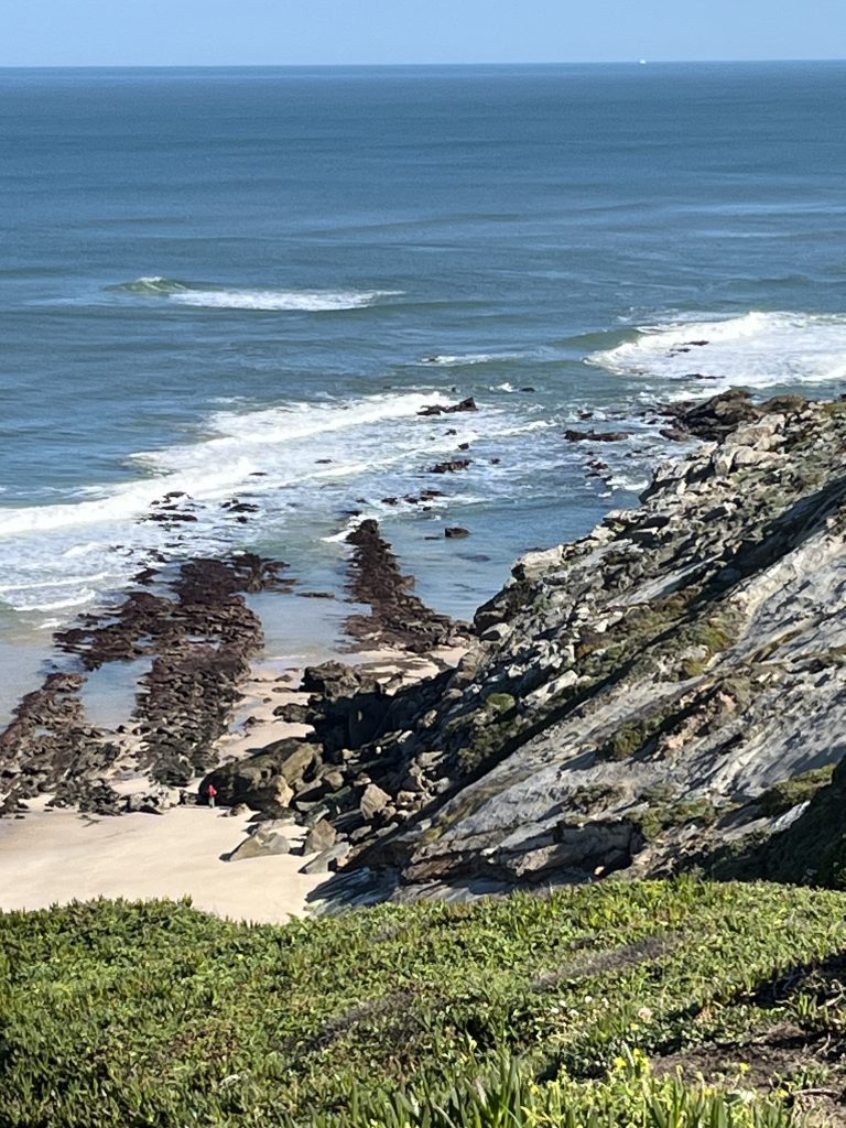 OUR JOURNEY: 55km indeed with the greatest elevation changes of any day so far. More ocean and waves with the best views as we reached Foz do Areli beach before circling the lagoon and at our final destination.