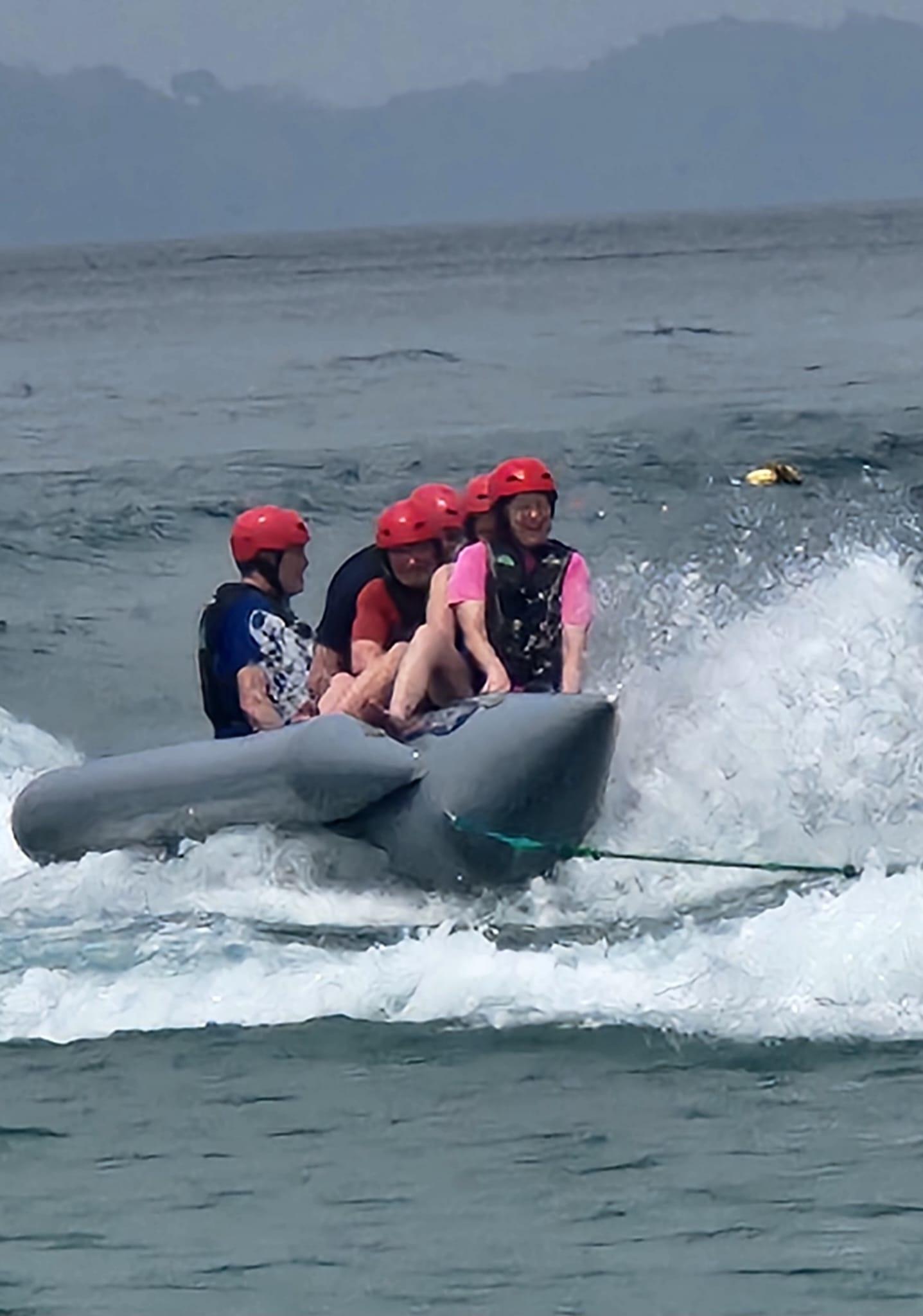 The next activity was a banana boat ride. They offered two versions, the mellow yellow or the crazy version. The crazy riders (myself included) suggested a modified crazy, which in the end, not so crazy. We still exited in a tangled pile with a good amount of sea water in our sinuses. My shoulder is a little sore today after one of the big boys at the back landed on me.