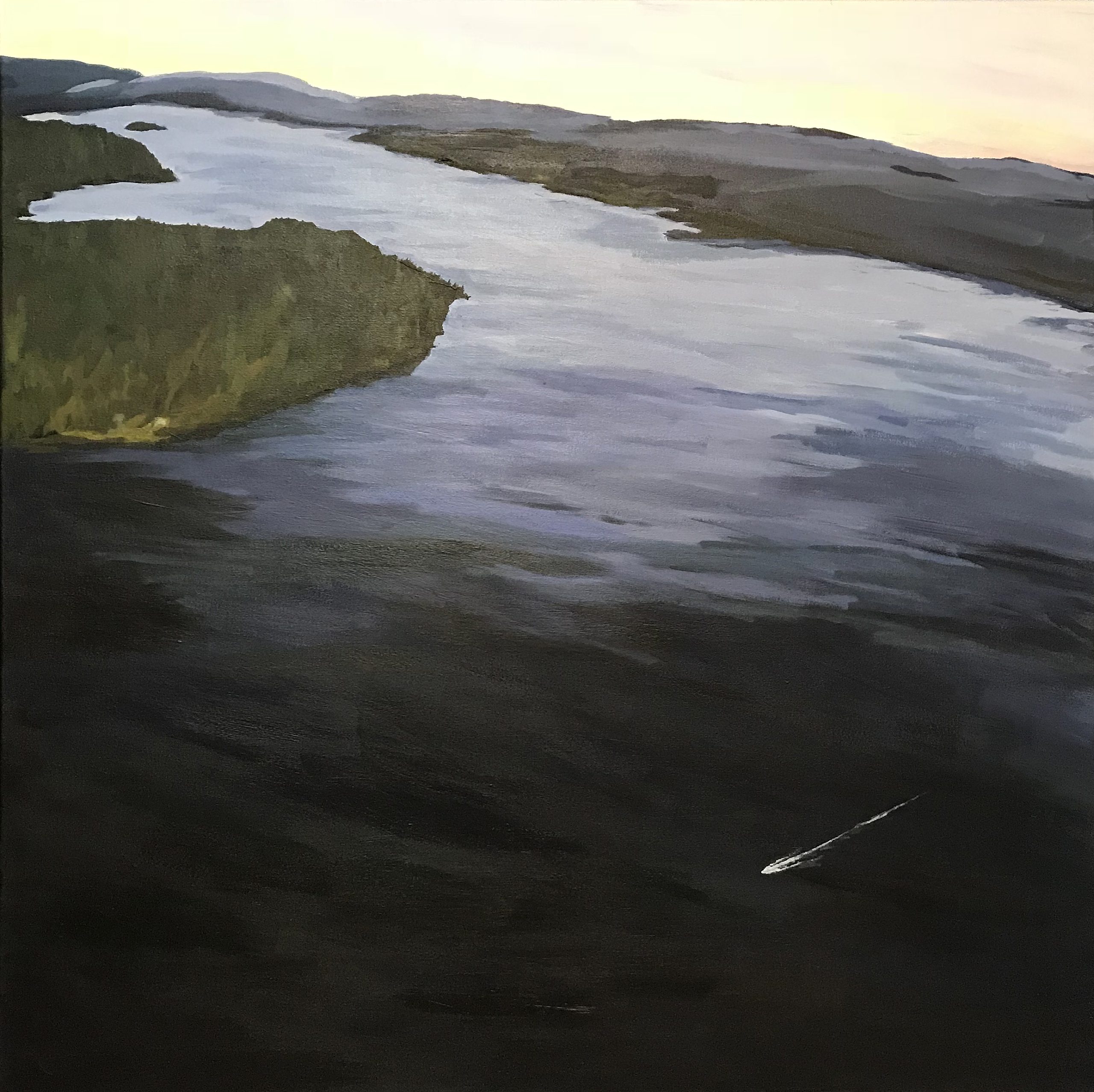 FINLAYSON ARM // Number one in the series on flight. Take off from Victoria. 36″ x 36″ acrylic on canvas.