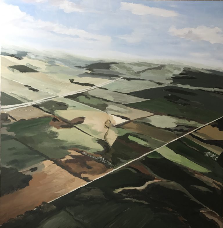 FOOTHILLS // Number two in the series on flight. 36″ x 36″ acrylic on canvas.