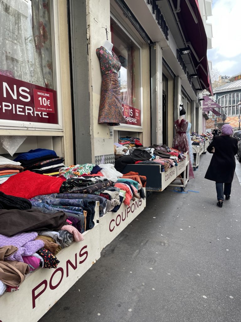 Then the trek uphill to Sacre Cœur. All this trip we have been shocked at how many people are lined up for things. We’ve been to Sacre Cœur before so didn’t bother waiting an hour in line, but wandered around the site. My personal shrine to visit in the neighborhood is all the fabric outlets at the base of the hill. Blocks and blocks of fabrics! Currently having second thoughts about the fabric I didn’t get.